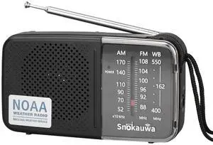 Portable AM FM Transistor Radio Battery Operated, NOAA Weather Radio with Loud Speaker, Headphone Jack, 2 AA Batteries, Excellent Reception, for Everyday Carry Essential, Travel, Storms