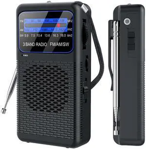 AM FM SW 3 Band Pocket Radio, Portable Battery Operated Shortwave Radio, Back Clip Transistor radios with 3.5mm Earphone Jack, Emergency LED Flashlight for Camping, Home