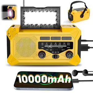 Emergency Weather Radio 10000mAh, Portable Radio with Solar Charging, Hand Crank & Battery Operated NOAA Alert, LCD Display, SOS Alarm, AM/FM & LED Flashlight, Clock Radio for Outdoor Emergency