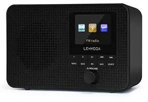 IR1 Portable WiFi Internet Radio,FM Digital Radio,Bluetooth Speaker,Dual Alarms Clock,Sleep Snooze Timer,40 Presets, Headphone-Output,Colour Display,Batteries or Mains Powered Black Finish