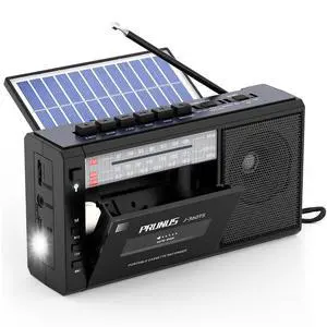J-360 Cassette Tape Player Boombox with Solar/Rechargeable Battery Operated,AM FM Portable Radio,Bluetooth Tape Player Recorder,AUX/TF/USB Drive, Headphone Jack,Tape Recorder Cassette Player