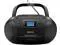 Measuring 9" H × 8.4" W × 4.6" D, this compact and portable boombox fits easily anywhere, featuring intuitive buttons on the top and front panel and a backlit LCD display for simple control. Perfect for enjoying your favorite tunes at home, in the shop, or on the go.