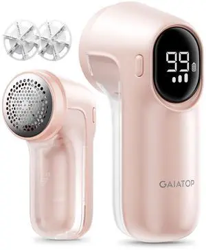 Fabric Shaver Rechargeable, Electric Lint Remover Shaver with LED Display, 6 Leaf Blade, 3-Speeds Sweater Depiller for Clothes, Furniture, Couch, Fuzz, Pills, Pink