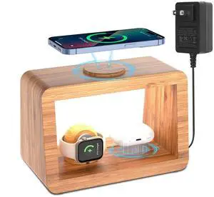Bamboo Wireless Charging Station: 3-in-1 Wireless Charger with Night Lights - Fast Charging Stand Compatible with iPhone 16/15/14/13/12 Pro Max/X/Xs Max/8, AirPods Pro, Watch Series 10/9/8/7/6/5-2/SE