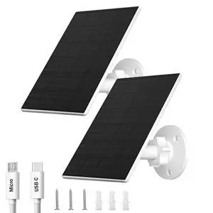 Solar Panel for Security Camera, 5W USB Solar Panel for Micro USB and USB-C Port Outdoor Rechargeable Battery Camera, Solar Panels with 9.8ft Cable, Adjustable Wall Mount, IP65 Waterproof, 2 Pack