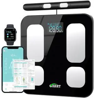 Scale, Scale for Body Weight, Digital Bathroom Scale for Body Fat, BMI, and Heart Rate, Body Composition Analyzer with App, Batteries Included, Bluetooth, 400 lb, Black