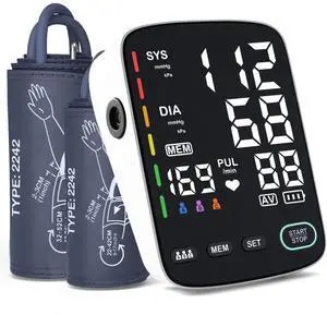 Features: Blood Pressure Machine, 1 x Extra Large Cuff 13-21" 1 x Standard Cuff 9-17", 4 x AAA Batteries 1 x Type-c USB Cable, 1 x Nylon Carry Bag 1 x User Manual 1 x User Operation Guide, Large Display, Battery Powered, false