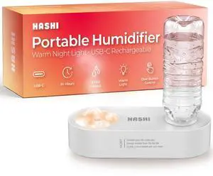2000mAh Wireless & Corded Portable Water Bottle Humidifier, USB-C Rechargeable Personal Mini Humidifier with Night Light, Leak-Proof Ultrasonic Cool Mist Maker for Travel, Office, and Car