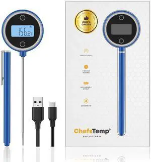 Pocket Pro 1-Second Instant Read Meat Thermometer, Rechargeable Digital Thermometer for Grilling, Food, BBQ, Kitchen Cooking, Oil Deep Frying & Candy (Nobility Blue)