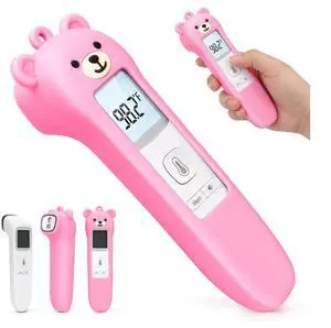 Bear Silicone Case Compatible with GoodBaby Thermometer for Adults and Kids, Cute Cartoon Thermometer Protective Case, Help Restless Baby Temperature, for Travel, Home and Outdoor (Pink)