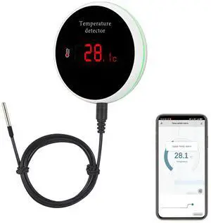 WiFi Thermometer Smart Temperature Sensor: Wireless Temperature Monitor with Waterproof External Probe, App Alerts and Buzzer Alarm, Digital Temperature Gauge for Refrigerator, Freezer, Fish Tank