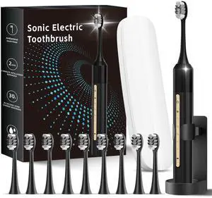 Lumivoid Sonic Electric Toothbrush with 10 Brush Heads for Adults and Children, Up to 90 Days on a Single Charge, 5 Modes, Built-in 2-Minute Smart Timer, IPX8 Waterproof Electric Toothbrush (Black)