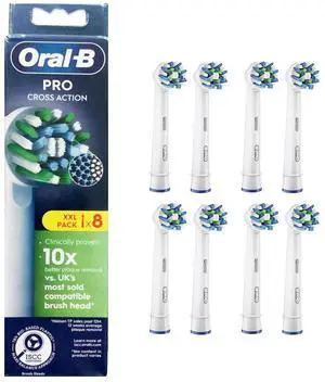 Oral-B Pro Cross Action Electric Toothbrush Head, X-Shape and Angled Bristles for Deeper Plaque Removal, Pack of 8 Toothbrush Heads, White