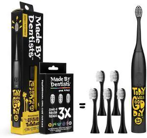 Made by Dentists Sonic X Electric Toothbrush Rechargeable Kids Sonic Toothbrush, 8X Plaque Removal, 2 Speed Modes, 2-Minute Timer, 6 Brush Heads Included, Today was A Good Day Edition