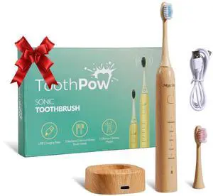 MgcSto Electric Bamboo Toothbrush for Adults - Bamboo Toothbrush Heads Design with Castor Oil Bristles - 5 Adjustable Cleaning Modes - Upgraded IPX7 Waterproof Technoloy for Adults