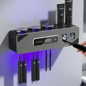 Wall Mounted Electric Toothbrush Holders with 3 Cups, UV Sanitizer, Toothpaste Dispenser, Smart Home Bathroom Accessories & Decor, Black