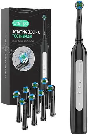 Rotating Electric Toothbrush for Adults with 8 Brush Heads (2 Types), 4 Modes Deep Clean Electric Toothbrush with Rechargeable Power and 2 Min Smart Timer (1- Black, p1)