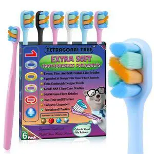 Extra Soft Manual Toothbrush Pack, 6 Count, Deep Cleaning Flossing Toothbrushes for Sensitive Teeth & Receding Gums, Tapered Bristles for Adults & Elders, Help Plaque Removal, Assorted Colors