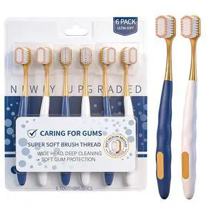 Soft Toothbrushes for Adults, Soft Rounded Bristles, Built in Gum Stimulators, 6 Count