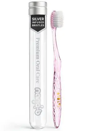 Antibacterial Toothbrush with Silver Bristles and Pink Handle Nano-b