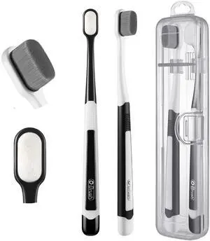 Ultra Extra Soft Toothbrush for Sensitive Gums, New Japanese 20,000 Micro Fine Nano Bristles Brush for Adults, Pregnant and Elderly, Portable Case for Travel, Black and White Color Pack of 2