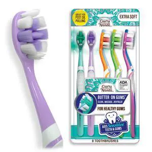 Butter On Gums Toothbrush, ADA Accepted, with 8000+ Ultra Soft Softex Bristles for Sensitive & Receding Gums, Perfect for Whiter Teeth, 8 Ct
