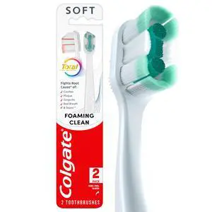 Total Active Prevention Foaming Clean Soft Toothbrushes, Soft Bristle Toothbrush Pack for Plaque Removal, Helps Reach Deeper Along the Gumline and Between Teeth, White, 2 Pack