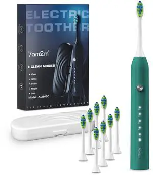 Sonic Electric Toothbrush for Adults and Kids, with 8 Brush Heads and Travel Case,5 Modes with 2 Minutes Built in Smart Timer, One Charge Use for 90 Days,Rechargeable Toothbrushes(Peacock Green)