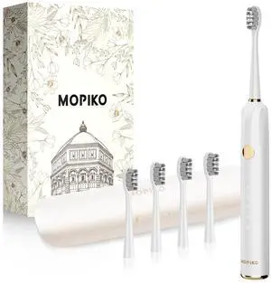 Sonic Electric Toothbrush for Adults - 6 Modes Rechargeable Electric Toothbrush with 4 Replace Brush Heads, Power Sonic Toothbrush with Travel Case, Ideal Gift for Men Women, White
