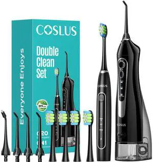 C20 & C41 Portable Water Flosser with Electric Toothbrush Combo: 2-in-1 Oral Clean Kit for Teeth, Braces, Gums Care - Brushing & Flossing for Adults, Family, Travel Use, BPA-Free, Black