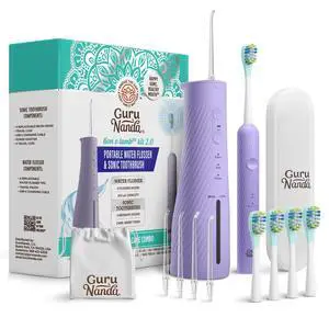 Lion & Lamb Kit 2.0, Electric Toothbrush with Water Flosser Combo, 4 Jet Tips, 4 Brush Heads, & IPX7 Waterproof Design for Complete Oral Care, Lavender