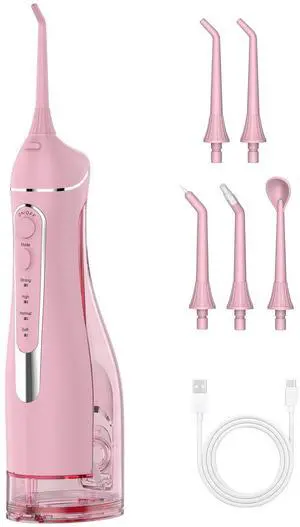 Speed: 1. Charge the device fully before first use and every 30 days of use. 2. Remove water tank fill it with warm water. 3. Select one 3 pressure modes using mode button. 4. Place tip in your mouth close lips to form a tight seal. 5. Lean over sink turn on flosser. 6. Move along gum line teeth, pausing briefly each tooth. 7. After use, remove rinse under clean 8. Store dry place keep away from when not