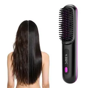 Go Brush - Pro for Short Hair - 2026 Upgraded Cordless,Portable Straightener Brushs for Travel,Fast Heating Cordless Mini Hair Brushs Styling Tools (Black)