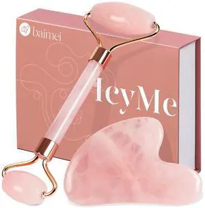 IcyMe Jade Roller & Gua Sha, Face Roller Redness Reducing Skin Care Tools, Self Care for Men Women, Massager for Face, Eyes, Neck, Relieve Fine Lines and Wrinkles - Rose Quartz