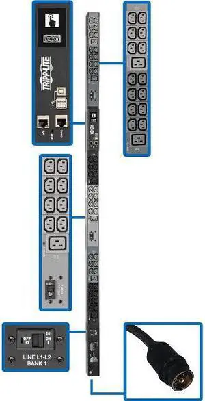 Tripp Lite 14.5kW 3-Phase Monitored PDU, LX Interface, 200 / 208 / 240V Outlets (42 x C13 / 6 x C19), LCD, IEC 309 60A Blue, 10.0 Feet Cord, 0U Height, TAA (PDU3EVN10G60B)- Style: Vertical