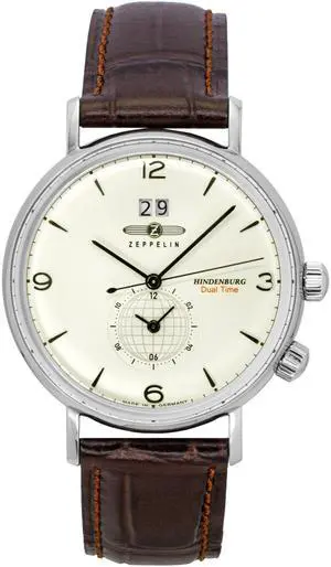 Zeppelin Hindenburg Brown Leather Strap Beige Dial Quartz 80445 Men's Watch