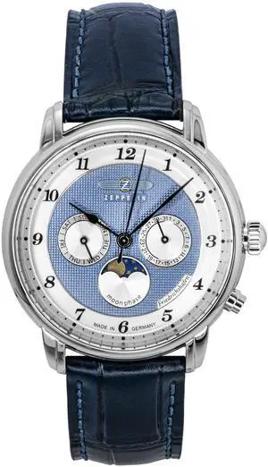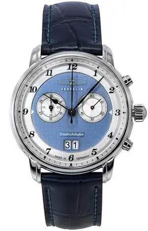 Zeppelin Friedrichshafen Blue Leather Strap Blue Dial Quartz 85363 Men's Watch