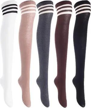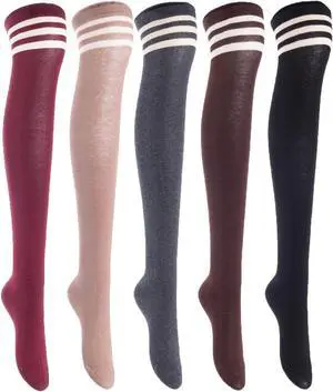 Lian LifeStyle Exquisite Big Girl's Women's 5 Pairs Super Comfortable Thigh High Cotton Socks in Vibrant Colors Size 6-9 L1024(Coffee,Beige,Wine,DG,Navy)