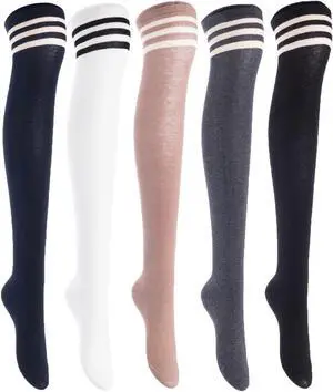 Lian LifeStyle Women's 5 Pairs Adorable Comfortable Soft Thigh High Over Knee High Cotton Socks Size 6-9 L1022(Black,Coffee,DG,Khaki,Navy)
