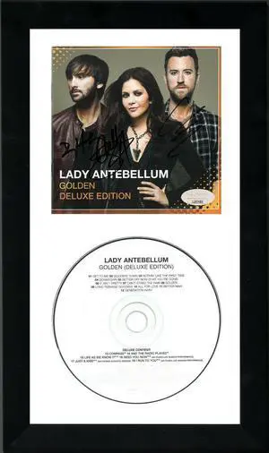 Lady Antebellum Band (Lady A) 2013 Golden Album Cover w/ CD 6.5x12 Custom Framing-JSA- Hillary Scott/Charles Kelley/Dave Haywood