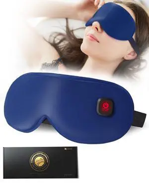 Cordless Heated Eye Mask for Dry Eye Relief, Improved Sleep, Electric Eye Heating Pad for Airplane Sleeping Travel,Washable(Navy)