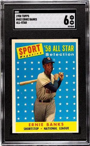 Ernie Banks 1958 Topps All-Star Baseball Card #482- SGC Graded 6 EX-NM (Chicago Cubs)
