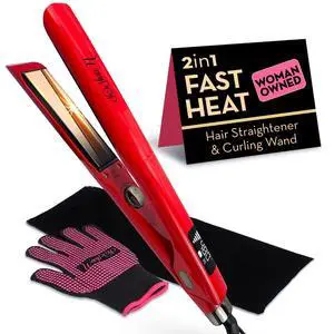 2 in 1 Professional Dual-Voltage Titanium Flat Iron Hair Straightener | up to 480°F | 10s Heat-Up | Straightening Iron & Hair Curling Wand 1.25" with Ceramic MCH Fast Heat, Auto Shut Off