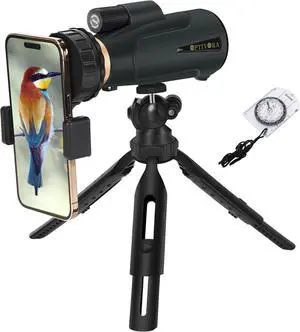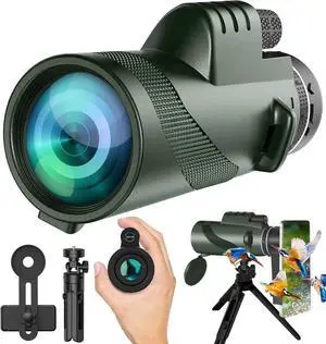 40X60 Monocular Telescope with Smartphone Holder& Tripod, High Power Nitrogen-Filled Monocular for Adults with BAK4 Prism & FMC Lens, HD Monocular Scope for Birdwatching Hiking Concert Travelling