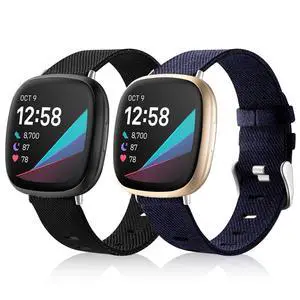 Compatible with Versa 3 and Sense Bands, Sports Breathable Band Woven Fabric Replacement Watch Strap for Versa 3 & Sense Smartwatch Accessories, Small Black Blue