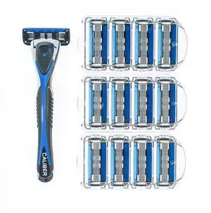 Personna Men's 5 Blade Razor System - Mens Shaving Razors - Razor Handle with 12 Replacement Cartridges