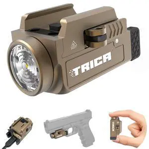 Trica 800 Lumen Mini Pistol LED Compact Strobe Tactical Gun Light, USB Rechargeable Rail-Mounted Weapon Flashlight for Pistol with Quick Release, 1913 or GL Rail, Built-in Battery (Desert Tan)- Brand: Accessory Power