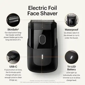 ® The Handyman Compact Face Shaver Portable Mens Travel Facial Hair Groomer, USB-C Rechargeable Razor, Electric Foil Face Shaver, Waterproof, Cordless, Dual-Action SkinSafe® Foil Blades