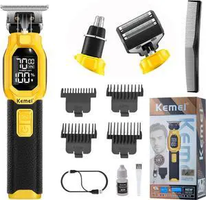 KEMEI 1878 Beard Trimmer for Men, 3 in 1 Hair Clippers, Shavers for Men, Cordless Nose Hair Trimmer with Removable Head, LED Display