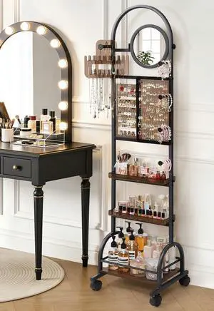 Mirror Jewelry Cabinet Standing, Jewelry Organizer and Storage with Jewelry Mirror, Jewelry Armoire with Earring Organizer Necklace Holder Bracelet Display, Large Tall Stand Up Jewelry Box Stand Tree
